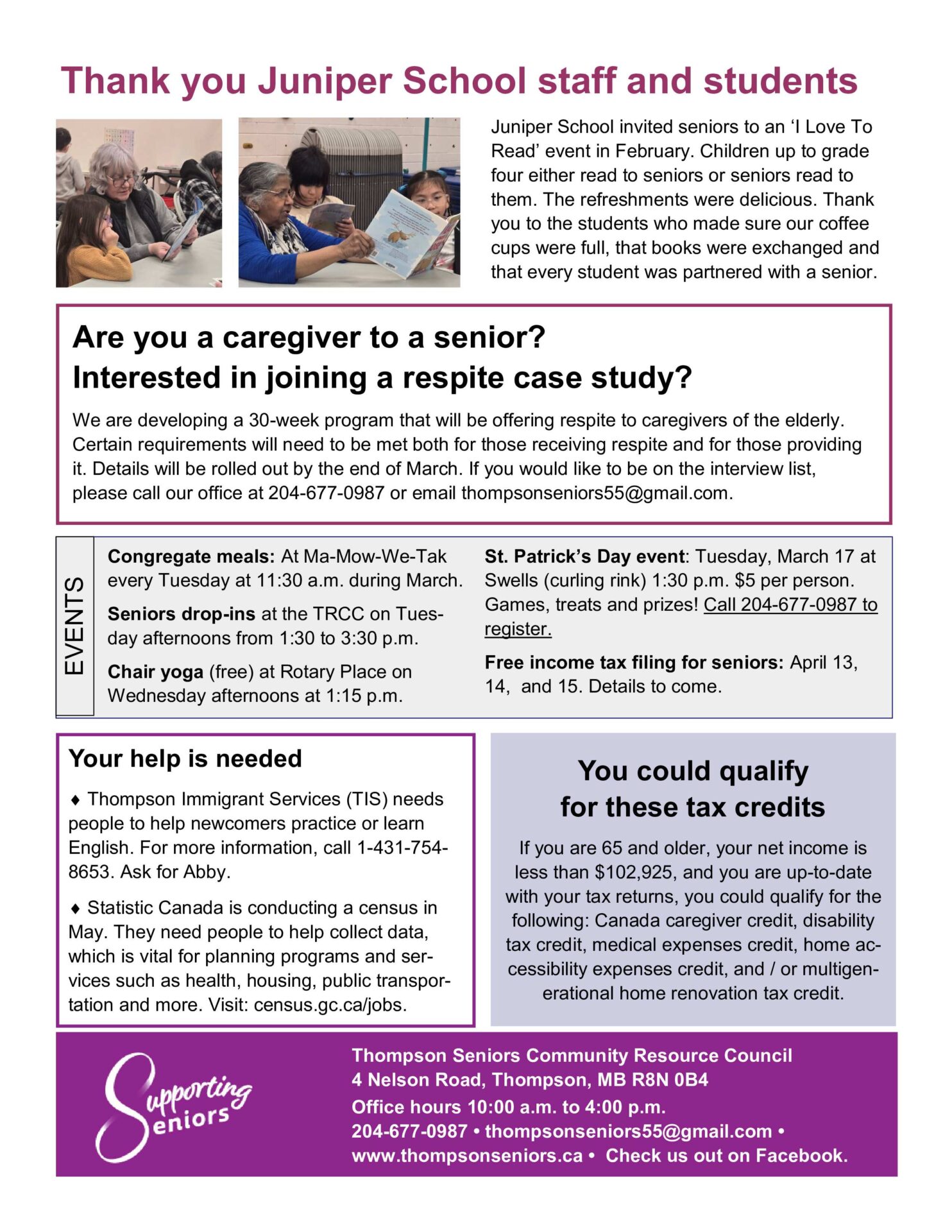 - To recognize and identify the seniors and elders in Thompson.