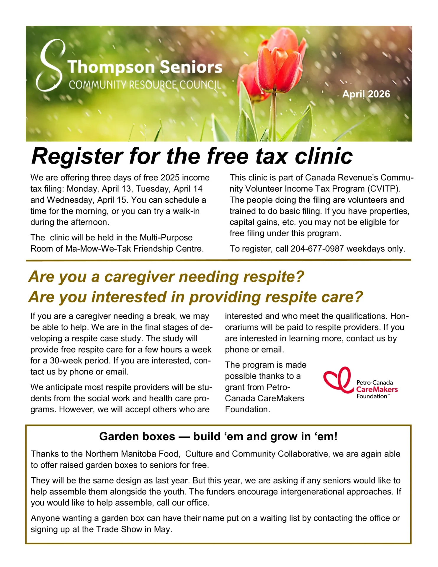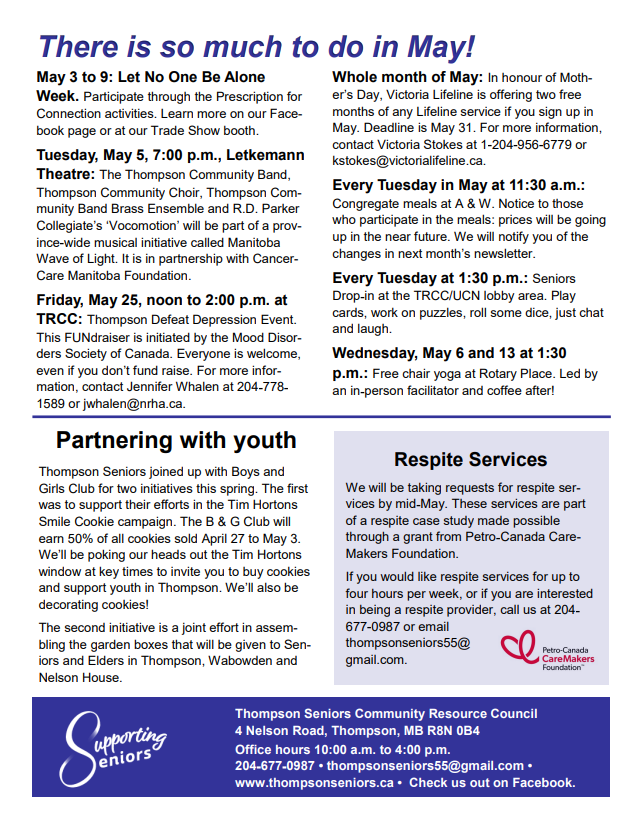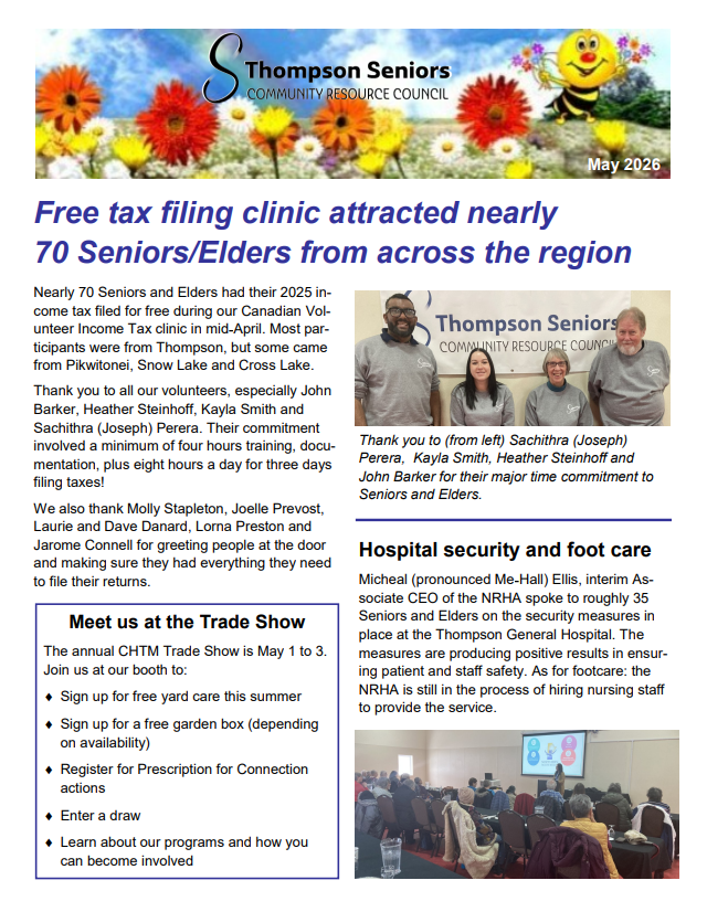 - To assist in the well-being of seniors and elders in the city of Thompson.