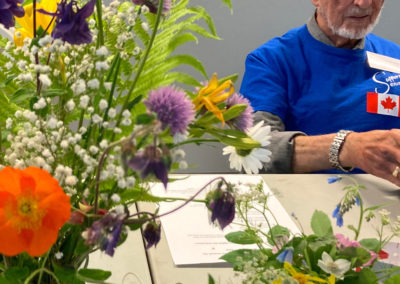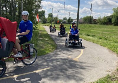 July: Drop-ins, Bike rides for mobility challenged, free yard/garden works, Bring Your Bloomers event at Canada Day, hamper program