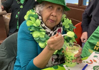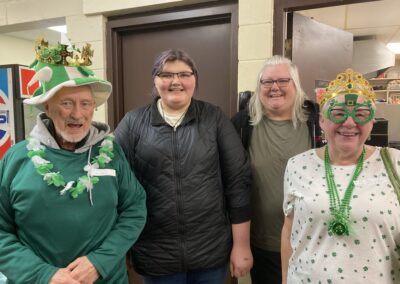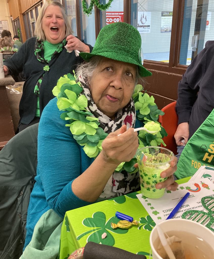 March: Congregate meals, drop-ins, craft workshops, St. Patricks Day potluck supper, fund raising event, hamper program